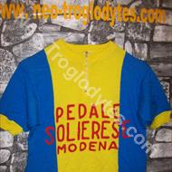 Maglia ciclismo Pedale Solierese Modena 70s Ricamata OGGETTO USATO anni '70 Condizioni: alcune riparazioni DETTAGLI: amateur Taglia MEDIUM/ LARGE Dim. busto davanti cm. 50 Lunghezza cm. 77 Materiale: wool